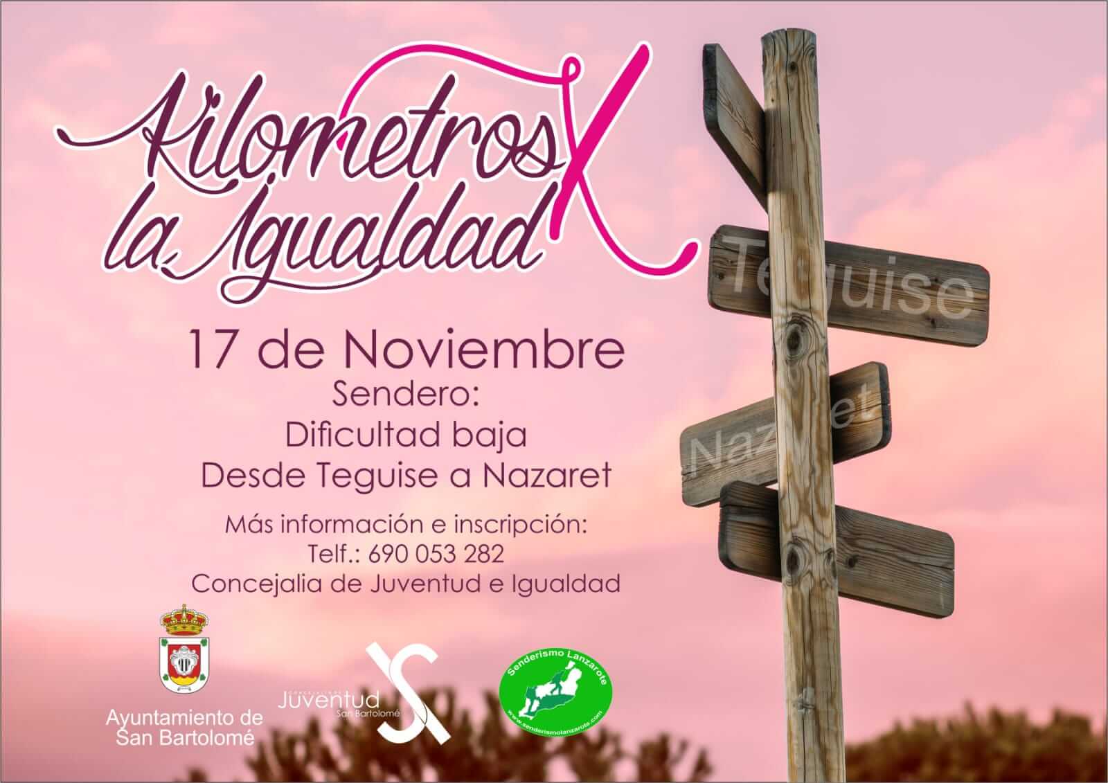 Participa en la carrera solidaria Kilómetros por la igualdad, organizada por las concejalías de juventud e igualdad del Ayuntamiento de San Bartolomé, que se celebrará el sábado, día 17 de noviembre, con sendero de Teguise a Nazaret.
