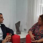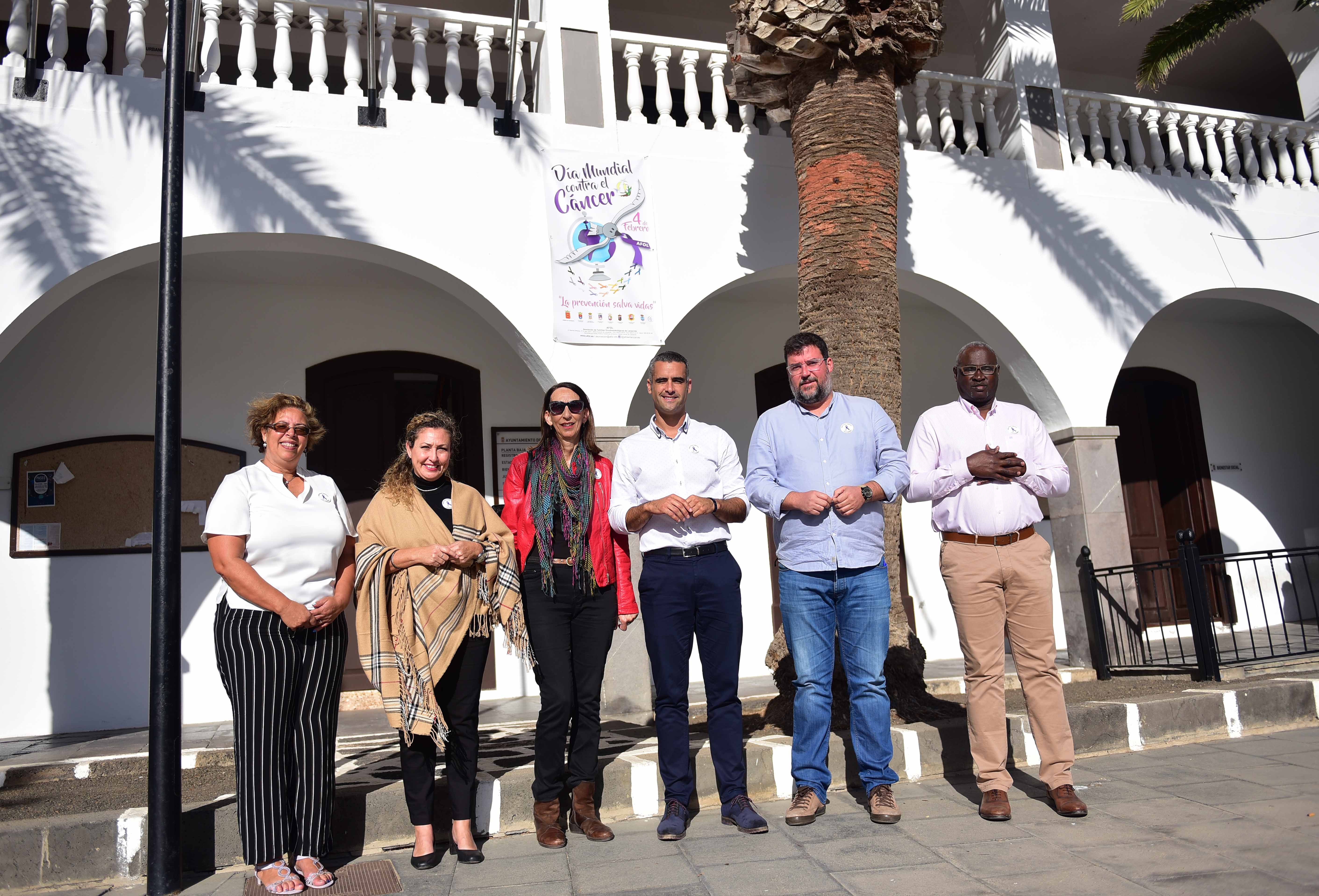 En la mañana de hoy, el Ayuntamiento de San Bartolomé recibió la visita de Carmen Arrocha, presidenta de AFOL, junto al Alcalde, Alexis Tejera y otros miembros de la Corporación para Conmemorar el Día Mundial contra el Cáncer.