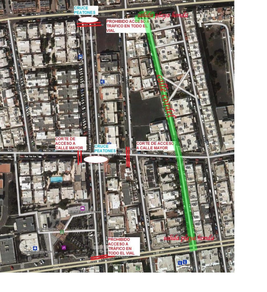 LA CALLE MAYOR EN PLAYA HONDA CERRADA AL TRÁFICO DE 7.30 A 15.30 HORAS POR MOTIVOS DE SEGURIDAD QUEDANDO HABILITADOS DESVÍOS PROVISIONALES DE TRÁFICO