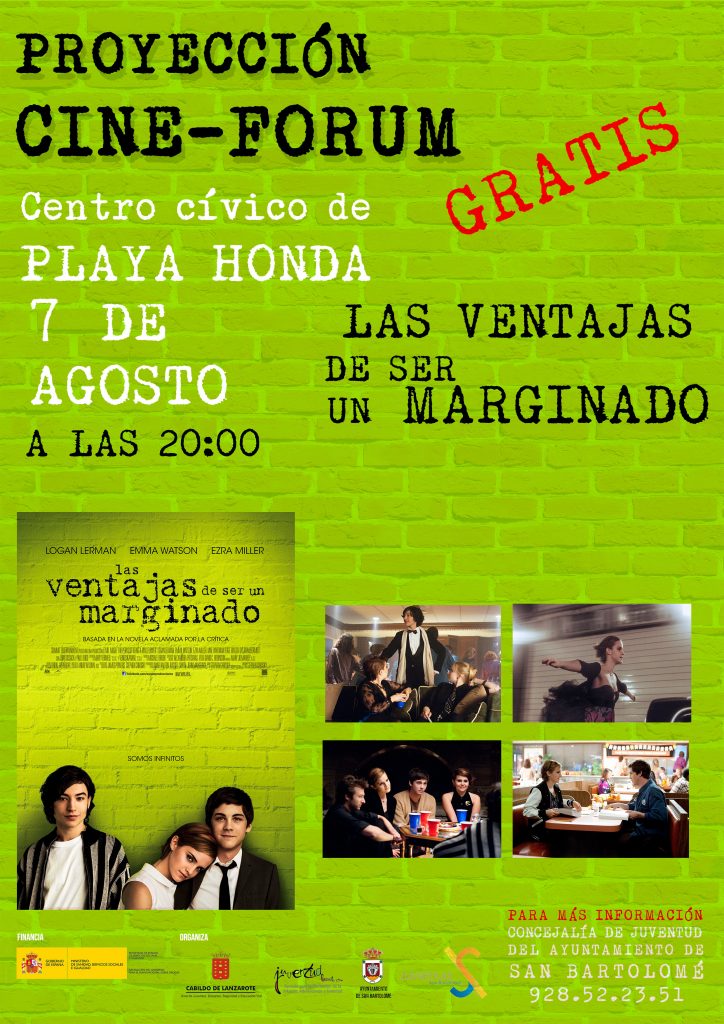 Todas las proyecciones tendrán lugar en el Centro Cívico de Playa Honda, dentro de la Campaña de verano que organiza la concejalía de Juventud del Ayuntamiento de San Bartolomé, delegada en David Rocío. Las proyecciones son totalmente gratuitas, y este jueves, 7 de agosto, a las 20.00 horas se proyectará la primera de las películas “Las ventajas de ser un marginado”. (más…)