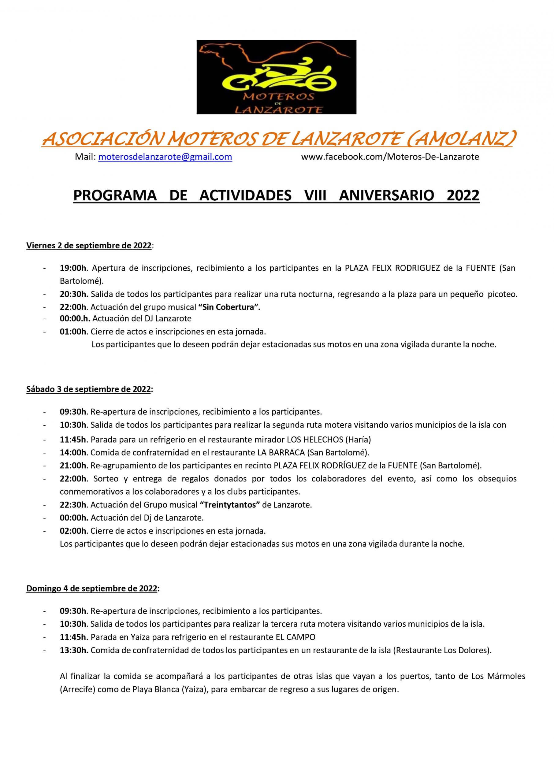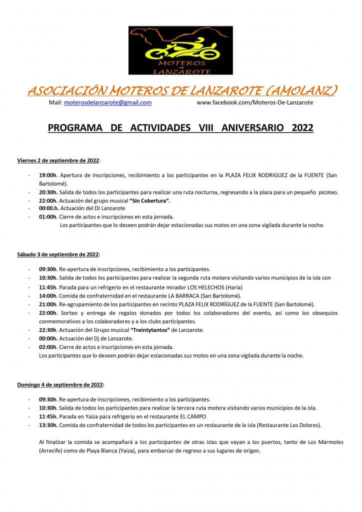 PROGRAMA DE ACTIVIDADES VIII ANIVERSARIO 2022