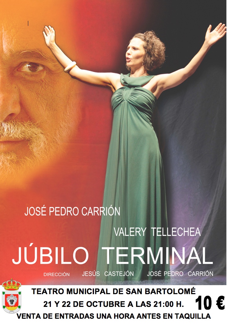 Júbilo Terminal enfrenta a un viejo actor jubilado antes de tiempo que pierde sus facultades día a día, desencantando, enfermo, lleno de prejuicios y a una joven mujer apasionada amante del teatro, llena de sueños e ilusiones que busca la salida de urgencia a un mundo nuevo y más respirable. Ambos comparten un éxtasis delirante en un ambiente de ensueño, y un teatro, por fortuna, en crisis permanente.