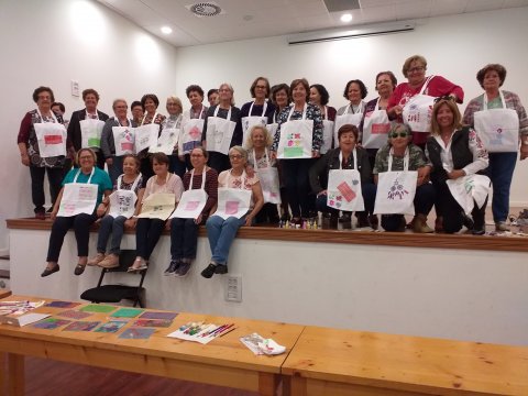 El taller “Decora tu bolsa”, celebrado en el Centro Cívico de Playa Honda, lo impartió Carmen Medina (Centro Tagoror).