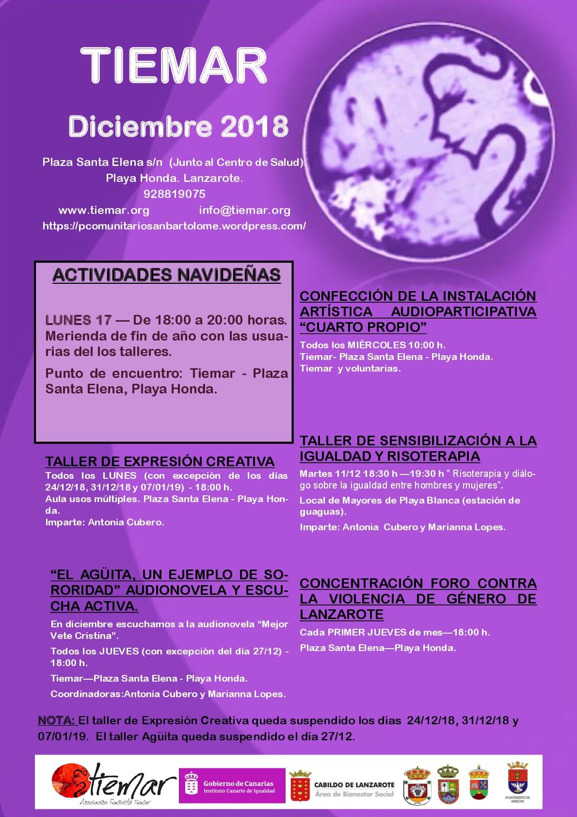 Punto de encuentro: Tiemar – Plaza Santa Elena, Playa Honda.
