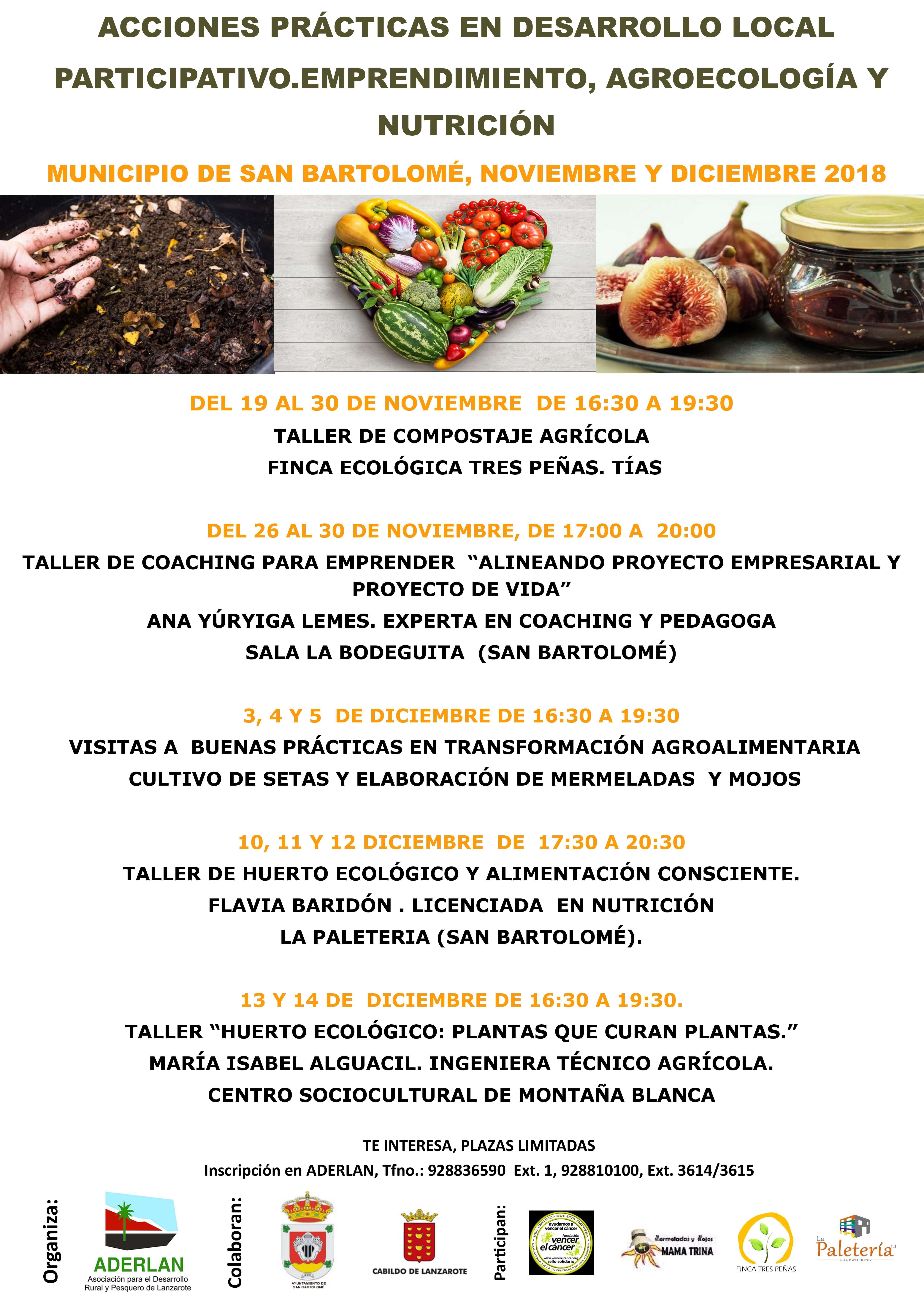 La Asociación para el Desarrollo Rural y Pesquero de Lanzarote (ADERLAN) en colaboración con el Ayuntamiento de San Bartolomé y el Cabildo de Lanzarote está desarrollando el proyecto “Acciones Prácticas de Desarrollo Local Participativo en el municipio de San Bartolomé: Emprendimiento, Agroecología y Nutrición”.