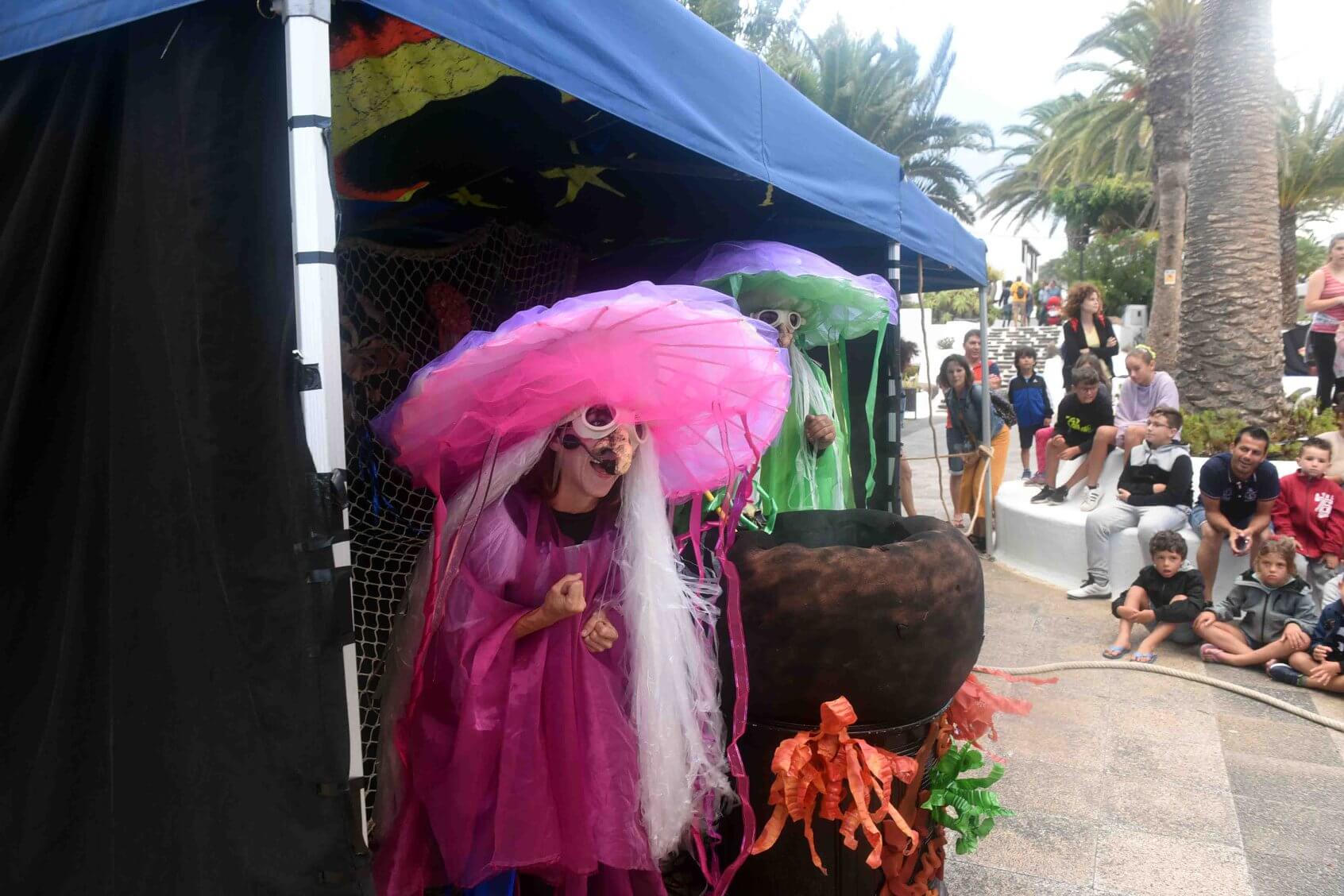 El teatro en su versión itinerante llegó hasta la plaza León y Castillo, con la puesta en escena de la obra “Callejeando por el Fondo del Mar” dentro de la agenda de actos de los festejos patronales, orientado al disfrute de público familiar. Divertido viaje conjunto por el fondo del mar.