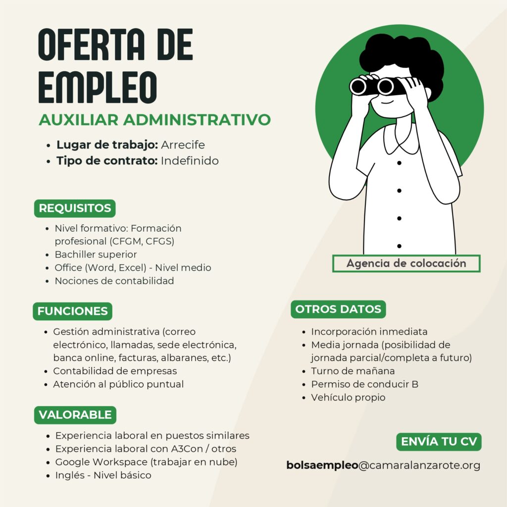 En ROCA GLOBOS estamos buscando personal para nuestra tienda de regalos, chuches y souvenirs ubicadas en el aeropuerto de Lanzarote. Incorporación inmediata. Necesitamos un perfil que nos ayude tanto en la gestión de mercancía como en tienda, por tanto, si tienes experiencia en gestión de producto y en tienda, te gusta trabajar en equipo y quieres formar parte de una empresa joven y dinámica, no dudes en aplicar a nuestra oferta. En el puesto desarrollarás las siguientes funciones: -Recepción de mercancía y cotejo de albaranes. -Ubicación de la mercancía en el almacén, control de stock. -Preparación de pedidos para la tienda. -Limpieza, organización y mantenimiento del almacén. -Atender y asesorar a nuestros clientes en sus compras. -Realizar operaciones de cobro, cambios y devoluciones en el TPV. -Reposición de mercancía que llega desde almacén respetando el visual de la tienda -Mantener el orden y la limpieza de la tienda. Ofrecemos contrato indefinido, salario según convenio y un incentivo variable en función de los objetivos de venta de la tienda. Contrato inicial de 32h semana con posibilidad de ampliación en base a necesidad. Necesitamos que tengas disponibilidad para trabajar de lunes a domingo en horarios rotativos tanto de mañana como de tarde. El horario de apertura de la tienda es de 06:00 a 22:00 ó de 07:00 a 21:00 dependiendo de los periodos de venta. Nos gustaría que ya contaras con algo de experiencia desarrollando este tipo de funciones, al menos 6 meses, y que tu lugar de residencia fuera relativamente cercano al puesto de trabajo. La mayoría de nuestros clientes son internacionales por lo que necesitamos que tengas un nivel de inglés que te permita comunicarte bien con ellos. Si estás interesado inscríbete en la oferta y en caso de que tu perfil encaje con el que buscamos te contactaremos