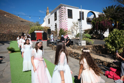 La feria contó con un variado programa de actividades, desde exposiciones y desfiles hasta ponencias de expertos en San Bartolomé, que culminó con un espectacular desfile infantil con propuestas de moda de Boutique Elvira y la colección de comunión de Oswaldo Machín, cuyo acto fue presentado por Rocío Garrigós fue la encargada de conducir la pasarela.