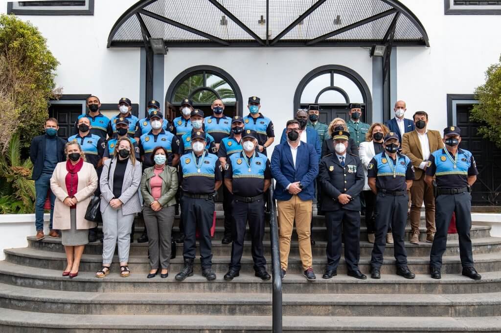 Los policías municipales de San Bartolomé distinguidos por sus 30 años de servicio en activo son Lorenzo Martín Acosta, Luis Carlos de León Quintero, José Pedro Tejera Cejas y José Javier Hernández Cabrera.