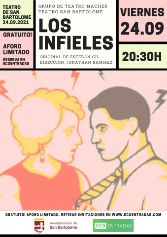 Representación Teatral a cargo del Grupo de Teatro de Mácher de la obra “Los Infieles” el 24 de septiembre en el Teatro de San Bartolomé