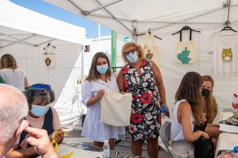 Mercado de trueque de ropa, taller de creación de bolsas de tela, tuneo de ropa usada y cuentacuentos actividades celebradas en Playa Honda dentro de la Eco Academia