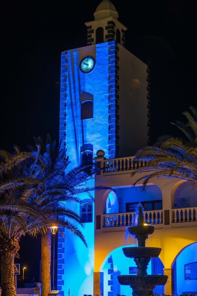 Anoche el Ayuntamiento se iluminó de color azul como muestra de apoyo a la lengua de signos española