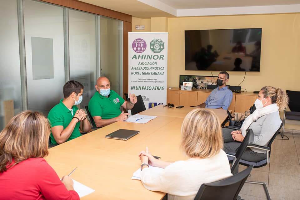 El alcalde, Alexis Tejera, y la concejala de Servicios Sociales, Lola Fernández Vega, se reunieron este jueves con representantes de AHINOR, asociación de afectados por hipoteca.