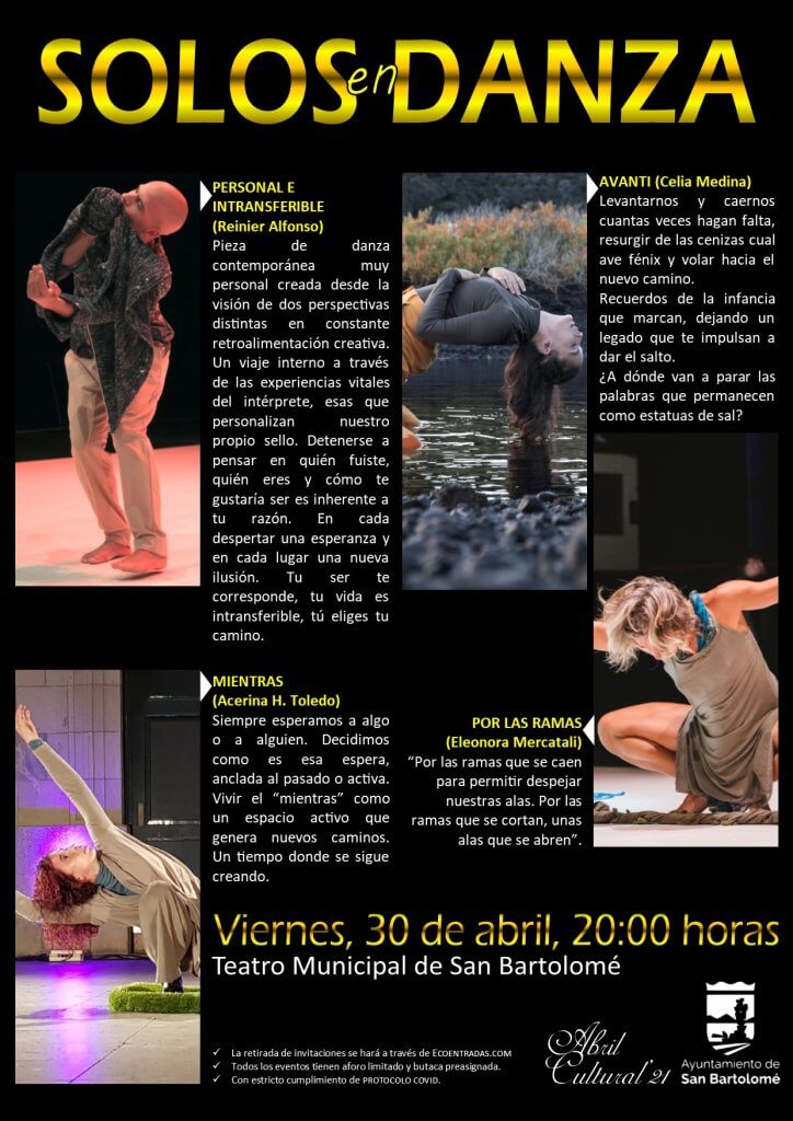 El Teatro de San Bartolomé acogió el espectáculo ‘Solos en danza’, en el que diferentes intérpretes y coreógrafos/as de danza contemporánea de la isla presentaron sus piezas individualmente.