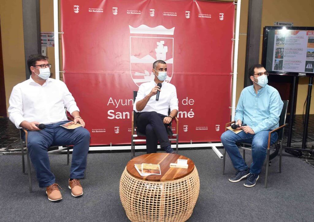 El municipio de San Bartolomé poco a poco va retomando la agenda cultural, presentando en la mañana de hoy el alcalde, Alexis Tejera, acompañado por el concejal de Cultura Isidro Pérez, y el consejero del Cabildo, Alberto Aguiar, la agenda cultural que se desarrollará bajo estrictas normas de seguridad en distintos espacios públicos que contarán con aforo limitado y asignación previa pero que mantendrá activa la cultura.
