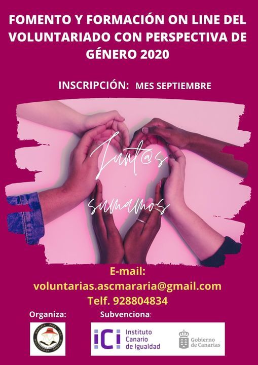 La Asociación Social y Cultural para las Mujeres Mararía, pone en marcha el Proyecto Fomento y Formación On Line del voluntariado con perspectiva de género 2020 “Junt@s, Sumamos” financiado por la Instituto Canario de Igualdad.