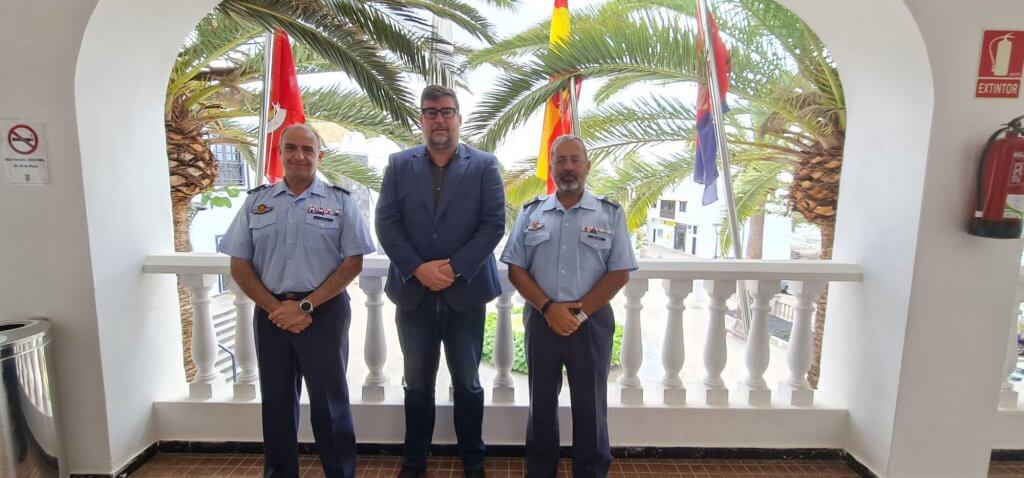 En la mañana de hoy el Alcalde, Isidro Pérez, recibió al Coronel Jefe del Aeródromo Militar de Lanzarote, José Vicente Teruel Sánchez, acompañado por el Suboficial Mayor de la Unidad, Enrique J. Ocaña, valorando muy positivamente la jornada, en la que en un primer momento, el Coronel se puso a total disposición del Alcalde, con el que se reunía por primera vez desde su nombramiento, abordando temas de interés para el municipio.