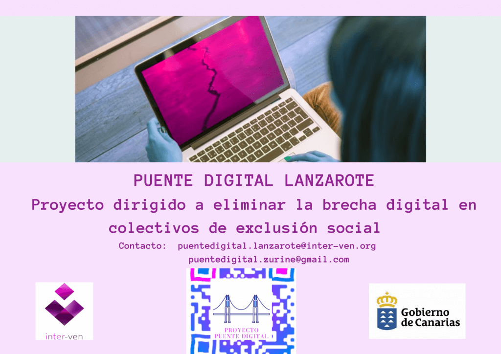 El Ayuntamiento de San Bartolomé, a través de la concejalía de Servicios Sociales, delegada en María Dolores Fernández, informa a toda la vecindad interesada que comenzó formación dentro del proyecto Puente Digital, con el fin de abordar la brecha digital poblacional. Las acciones formativas la imparte la Asociación Inter-ven, contando para ello con subvención del Gobierno de Canarias a través de la consejería de Derechos Sociales, Igualdad, Diversidad y Juventud.