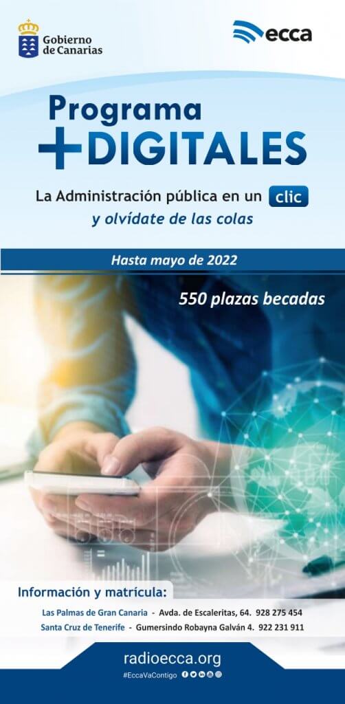 El Ayuntamiento de San Bartolomé informa a los vecinos y vecinas del municipio que hay plazas disponibles en el Programa +DIGITALES que imparte Radio Ecca, destinado a formar a personas con baja o media cualificación digital en el uso de las tecnologías de la comunicación y las plataformas digitales de las Administraciones públicas, para que realicen sus trámites a través de ellas.