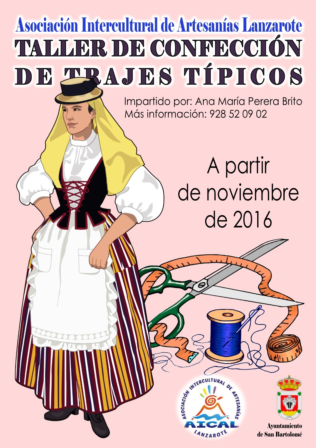 La Concejalía de Artesanía del Ayuntamiento de San Bartolomé, delegada en Isabel Sosa Corujo, informa que la Asociación Intercultural de Artesanías de Lanzarote ha puesto en marcha el Taller de Confección de Trajes Típicos, en la Casa Ajei, a cargo de la monitora-artesana Ana María Perera Brito.