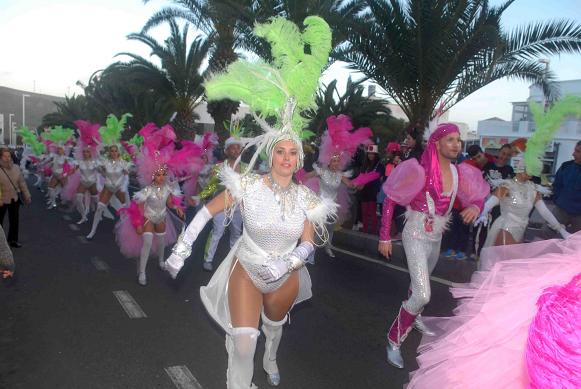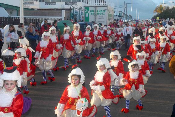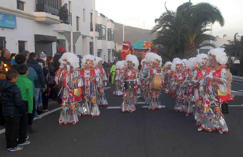 Vecinos y visitantes que pasan sus vacaciones en la isla disfrutaron en la tarde de ayer, del coso carnavalero de San Bartolomé, en una tarde en la que el frío hizo acto de presencia, dando comienzo a las 18.00 horas, con numerosos espectadores a lo largo de todo el trayecto.
