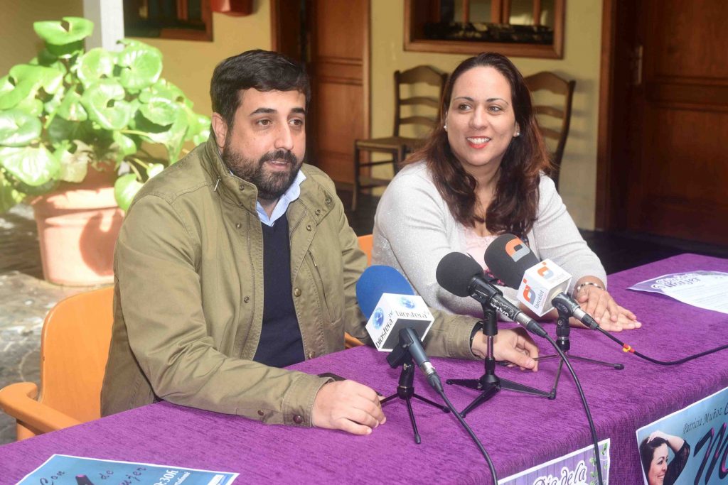 El primer teniente alcalde, David Rocío y la concejal de igualdad Isabel Sosa, presentaron en la mañana de hoy, en el patio del Teatro Municipal en rueda de prensa los actos conmemorativos del Día Internacional de la Mujer (8 de marzo), acompañados por ediles del equipo de gobierno. La propuesta del área de igualdad se centra en esta ocasión en actos que promueven los espacios de convivencia a través del ocio cultural y musical y actividades al aire libre, compartir espacios, experiencias y forjar lazos de unión.