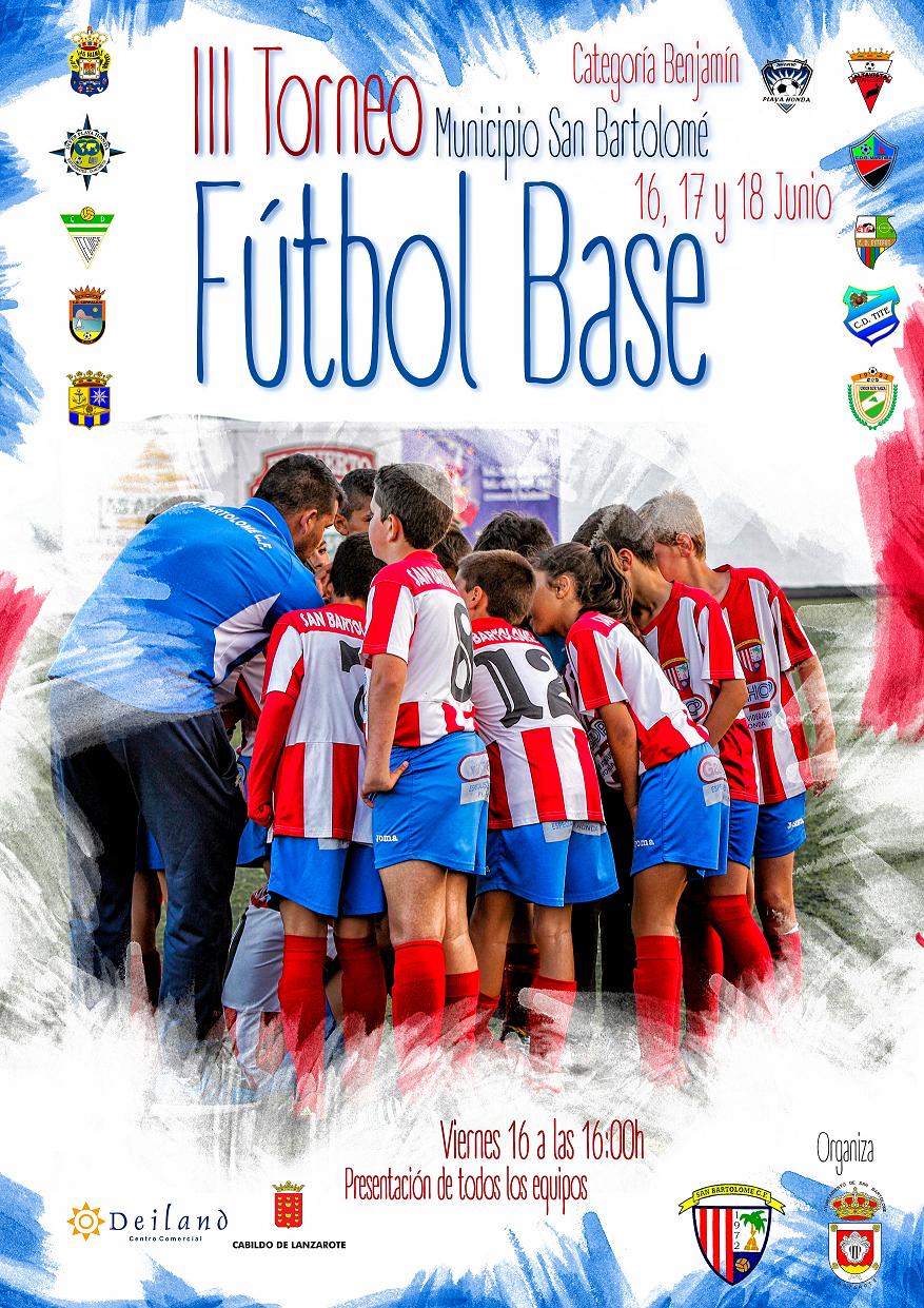 El III Torneo de Fútbol Base categoría benjamín de San Bartolomé, organizado por la concejalía de deportes y San Bartolomé C.F., se desarrollará en el Campo de Fútbol Pedro Espinosa “Colón”, los días 16, 17 y 18 de junio.
