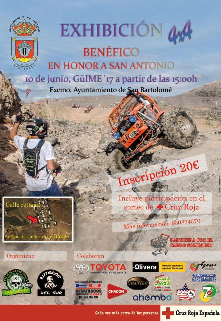 A las 15:00 horas tuvo lugar la exhibición de 4×4 en beneficio de la Cruz Roja organizado por Club Los Conejeros y Ruteros del Sur, en la calle Retama (antigua escombrera de Güime), concluyendo la noche con aforo completo en el Playback adulto organizado por los vecinos/sa de la localidad, risas, aplauso e ingenio. La velada concluyón con baile a cargo de Atlantis Swing.
