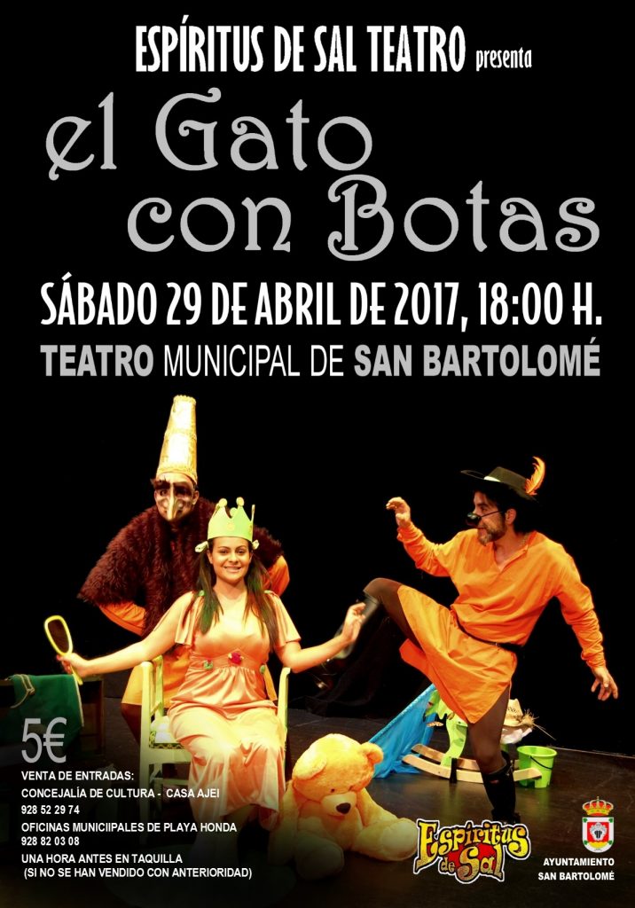 Espíritus de Sal Teatro presenta “El Gato con botas” el sábado 29 de abril, a las 18.00 horas en el Teatro de San Bartolomé.