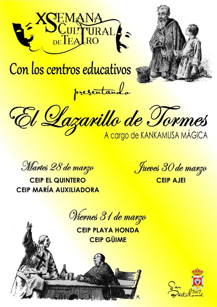 Kankamusa Mágica representará “El Lazarillo de Tormes”, para los colegios, en distintas sesiones, el martes 28 de marzo,en el CEIP El Quintero y Ceip María Auxiliadora, jueves 30 de marzo en el CEIP Ajei y viernes 31 de marzo en el CEIP Playa Honda y CEIP Güime.