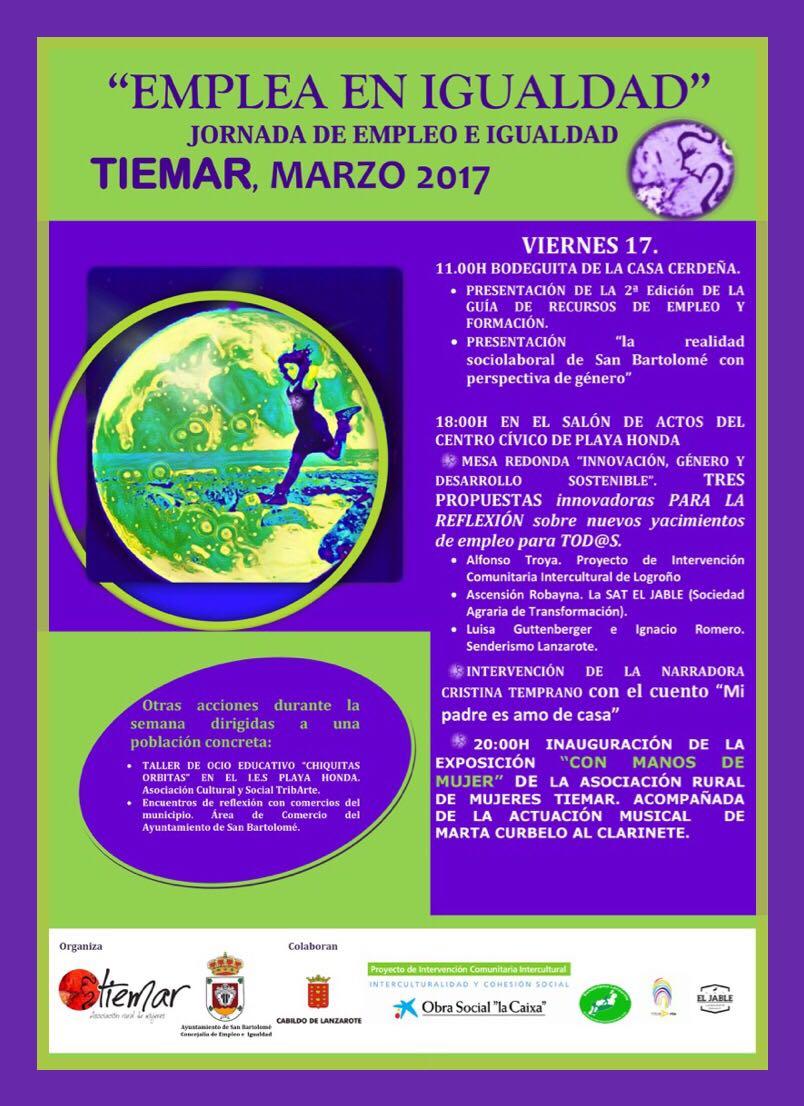 San Bartolomé ha celebrado con varios actos de Día de la mujer, organizados por la concejalía de igualdad. El sábado 11 de marzo más de 80 vecinos se sumaron a la caminata realizada por la zona de La Florida, guiada por Senderismo Lanzarote, por la zona del volcán, con explicaciones pormenorizadas de cultivos de la zona, historia y volcanes, así como de fauna y flora de la zona. El destino final de la caminata llevó a los participantes hasta el Monumento al Campesino, disfrutando de merienda y actuación de la Parranda Pal Porrón.