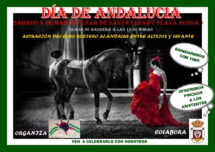 Playa Honda, el sábado, contó con motivo de la celebración del Día de Andalucía, con el izado de bandera para conmemorar dicha festividad. El acto lo organizó la Asociación Al-Andalus entre Alisios y Levante, en colaboración con el Ayuntamiento de San Bartolomé, sumándose a la cita un buen grupo de vecinos y vecinas disfrutando de la música, baile y cante andaluz.