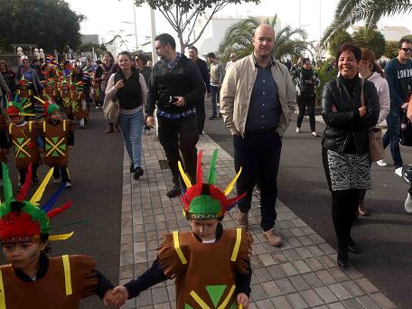 Dio comienzo con el izado de bandera. Al acto acudió la Concejal de Festejos, María Dolores Fernández acompañada por el Concejal de Servicios Públicos. Alexis Tejera y la Consejera del Cabildo, Ariagona González, puntuales a la cita, en la Plaza Santa Elena de Playa Honda, para presenciar el izado simbólico de banderas y actuaciones.