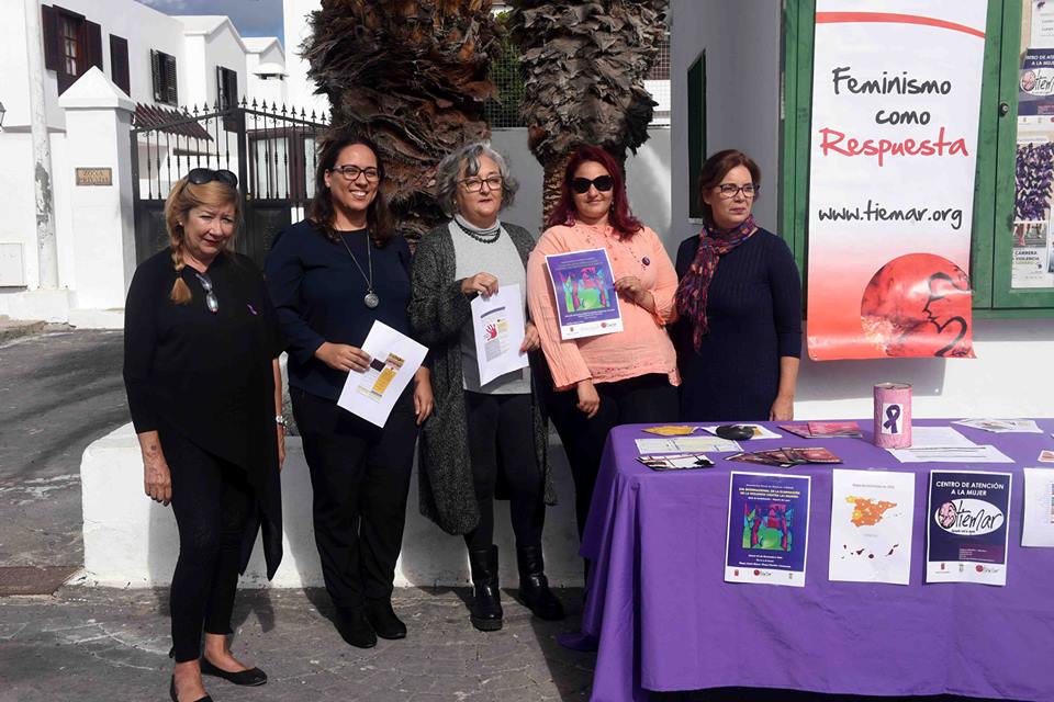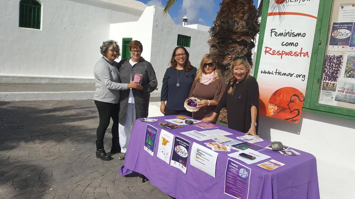 La asociación Rural de Mujeres Tiemar enmarcada en la “Campaña de Sensibilización contra las violencias machistas tiene instalada desde las 11.00 horas de este jueves, día 24 de noviembre y hasta las 13.00 horas, en la Plaza Santa Elena de Playa Honda, una mesa reivindicativa de concienciación y sensibilización contra toda violencia ejercida contra la mujer con motivo del Día Internacional para la eliminación de la violencia contra las mujeres #25N, haciendo también entrega de lazos violetas a la ciudadanía que se va acercando. La concejal de igualdad, Isabel Sosa, compartió con Tiemar esta reivindicación, junto a trabajadoras de la asociación, y presidenta de la misma Vicenta Monge.