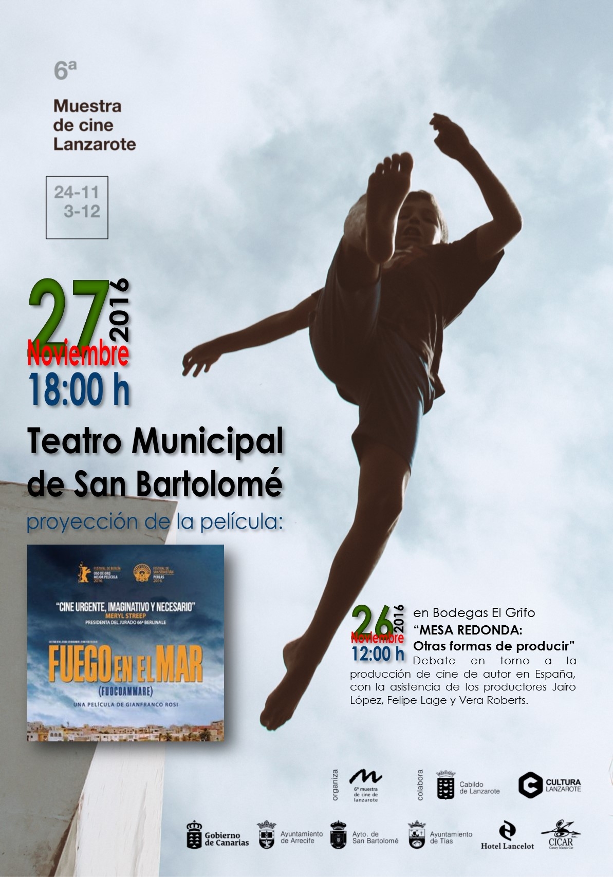 Organiza: 6º Muestra de cine de Lanzarote, colabora Ayuntamiento de San Bartolomé a través del área de cultura y Bodegas El Grifo.