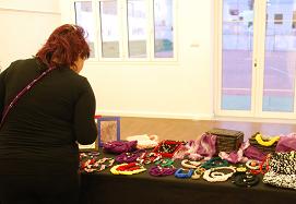El público asistente pudo visitar la Exposición Colectiva “Con manos de mujer”, una muestra del arte y creatividad de quince mujeres que participaron en talleres de papel reciclado, de aplicación de la cochinilla al arte y la artesanía, de estampado con pintura acrílica y cochinilla, etc.
