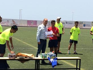 El concejal de deportes del Ayuntamiento de San Bartolomé, Raúl de León, acudió al acto de clausura de las 8ª Jornadas de Tecnificación de delanteros/as, centrocampistas, defensas y porteros de fútbol, que se desarrollaron en el Campo de Fútbol de San Bartolomé a la largo de la pasada semana, en el que participaron una veintena de profesionales bajo la batuta de Inocencio Pérez y 48 niños/as. Raúl de León, aprovechó para felicitar a todos los participantes y sus familias, a la organización, todo el cuerpo técnico por su profesionalidad y entrega, principalmente a Inocencia Pérez, Director de las Jornadas, participando en la entrega de diplomas, esperando que estos días de entrenamiento duro, en los que la técnica, el coach y la formación específica para cada puesto ha sido lo importante, hayan sido provechosos para todos/as los deportistas y para sus padres que también contaron con una jornada formativa paralela.