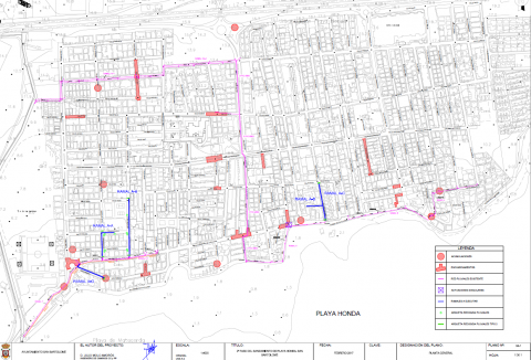 Son objeto del presente proyecto las obras necesarias para la evacuación de las aguas pluviales del núcleo de Playa Honda, consistentes en la ejecución de 4 ramales de conducciones para pluviales en diámetros 315, 400 y 500 mm, diseñando los puntos de entrega del agua al medio.