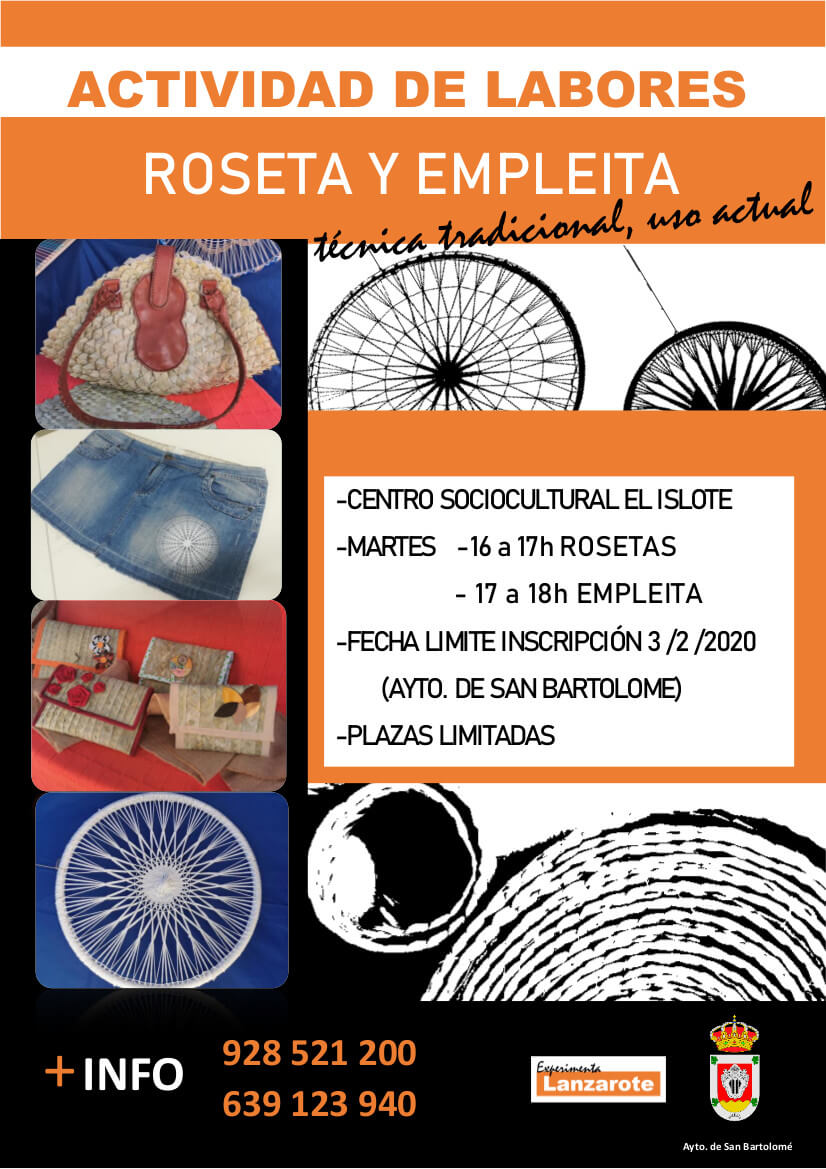El próximo mes mes de febrero comenazarán los talleres de Artesanía, talleres de labores de Empleita y Roseta, los martes en el Centro Socio Cultural de El Islote, a las 16:00 horas y a las 17:00 horas el Taller de Empleita.