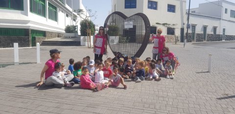 El alumnado de la Guardería Municipal de San Bartolomé llevó tapones solidarios, hasta el gran corazón donde se recogen en la Plaza León y Castillo.