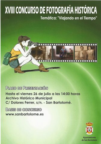 Con motivo de la celebración de las fiestas Patronales, 2019 y continuando con el plan de los actos festivos de San Bartolomé, impulsado por el Ayuntamiento de San Bartolomé a través de la Concejalía de Patrimonio entre los que se encuentra el XVIII Concurso de Fotografía Histórica “Viajando en el tiempo”, y visto que obra en el expediente administrativo el correspondiente documento de 1 de julio de 2019, de retención de crédito presupuestario adecuado y suficientemente por importe de 225,00 €.