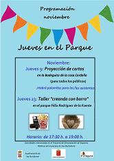 El jueves, día 23, se realizará el taller Creando con barro, en el Parque Félix Rodríguez de la Fuente. Las dos actividades comenzarán a las 17.30 horas y concluirán sobre las 19.00 horas.