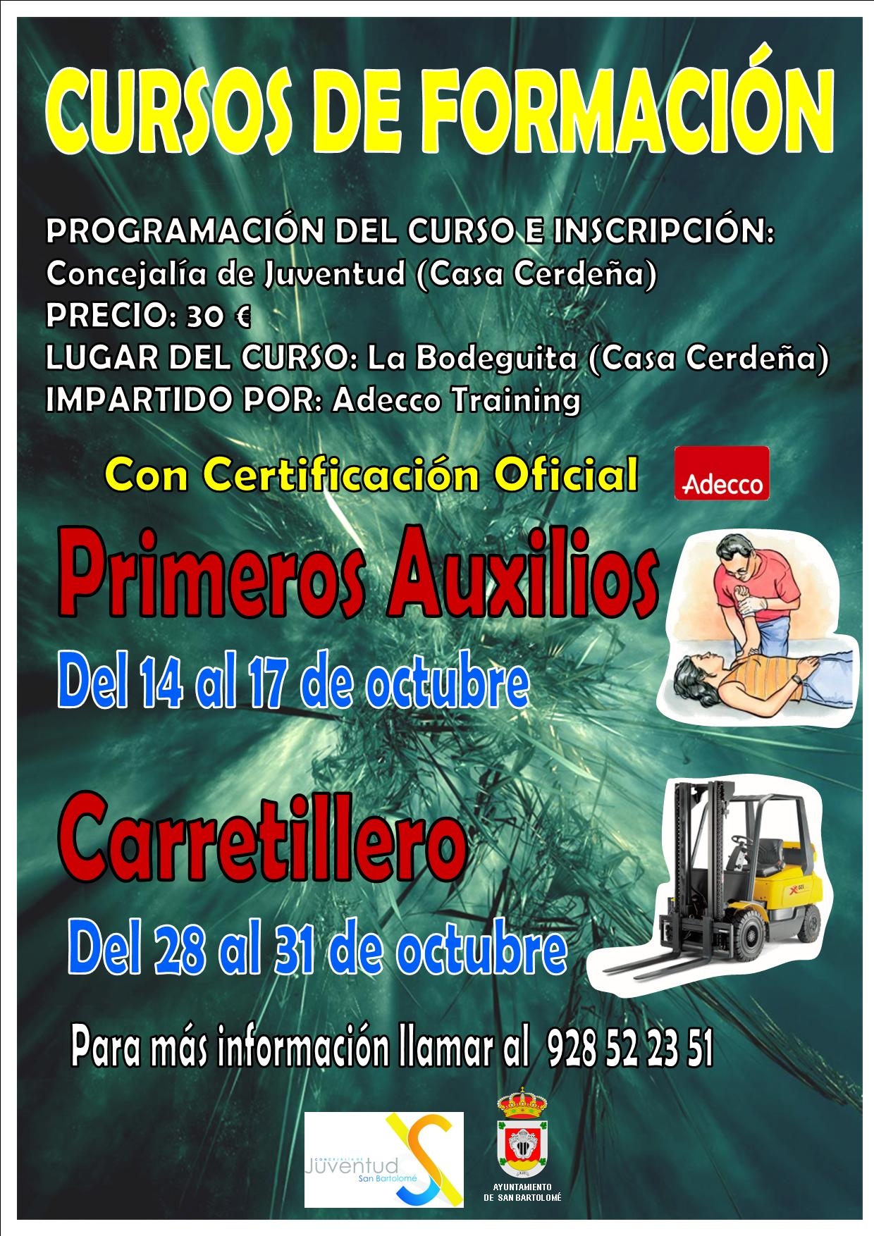 El Ayuntamiento de San Bartolomé a través de la Concejalía de Juventud, delegada en David Rocío, comunica a los vecinos del municipio, que se abre el plazo de inscripción para realizar los siguientes cursos para el mes de octubre: