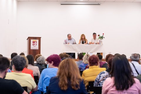 Ricardo Flores, escritor de varios poemarios, acompañó en todo momento a la escritora en su presentación, interpretando una selección de textos de Domi para el público asistente.