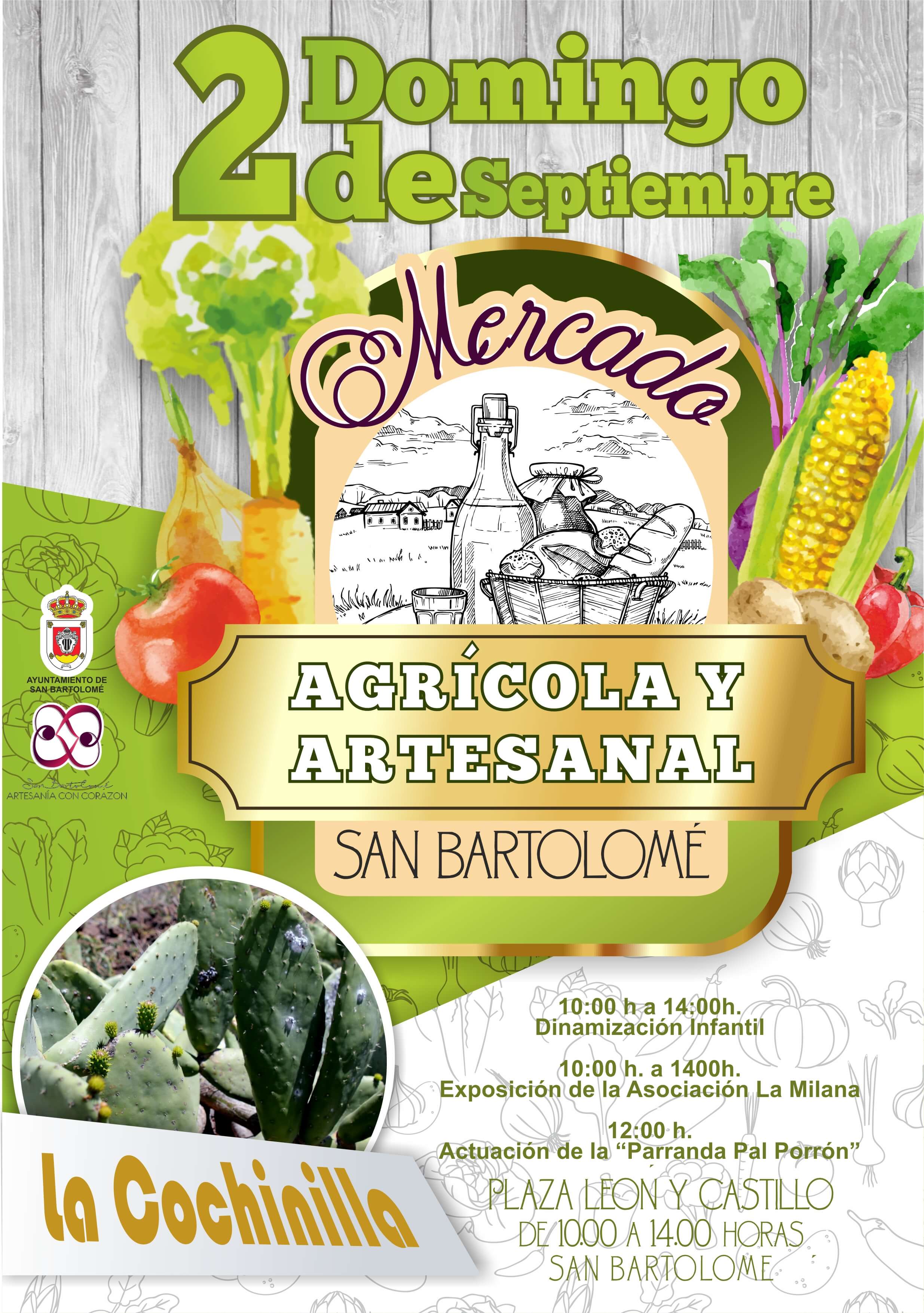 Las áreas de Agricultura y Artesanía del Ayuntamiento de San Bartolomé invitan a toda la vecindad y visitantes, el domingo, día 2 de septiembre, all Mercado Agrícola y Artesanal de San Bartolomé.