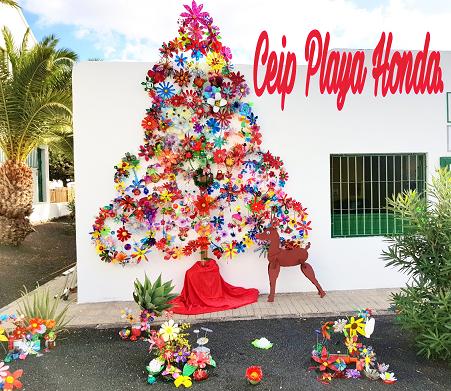 El CEIP Playa Honda luce un árbol navideño muy curioso y realmente bonito realizado todo con material reciclado, concretamente con botellas convertidas en preciosas flores de colores. Solidarios y siempre comprometidos con el medio ambiente. ¡Felicidades!