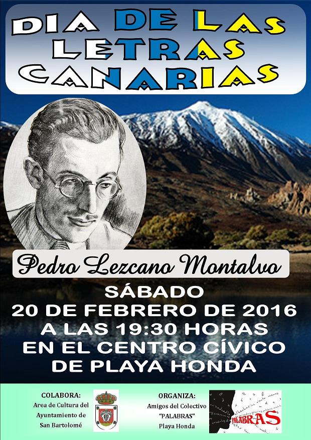 El Colectivo de amigos de la Literatura “PALABRAS”, con sede en la localidad de Playa Honda y en colaboración con el Ayuntamiento de San Bartolomé, rinde homenaje este sábado, día 20 de febrero en el Centro Cívico de Playa Honda, a partir de las 19:30 horas.