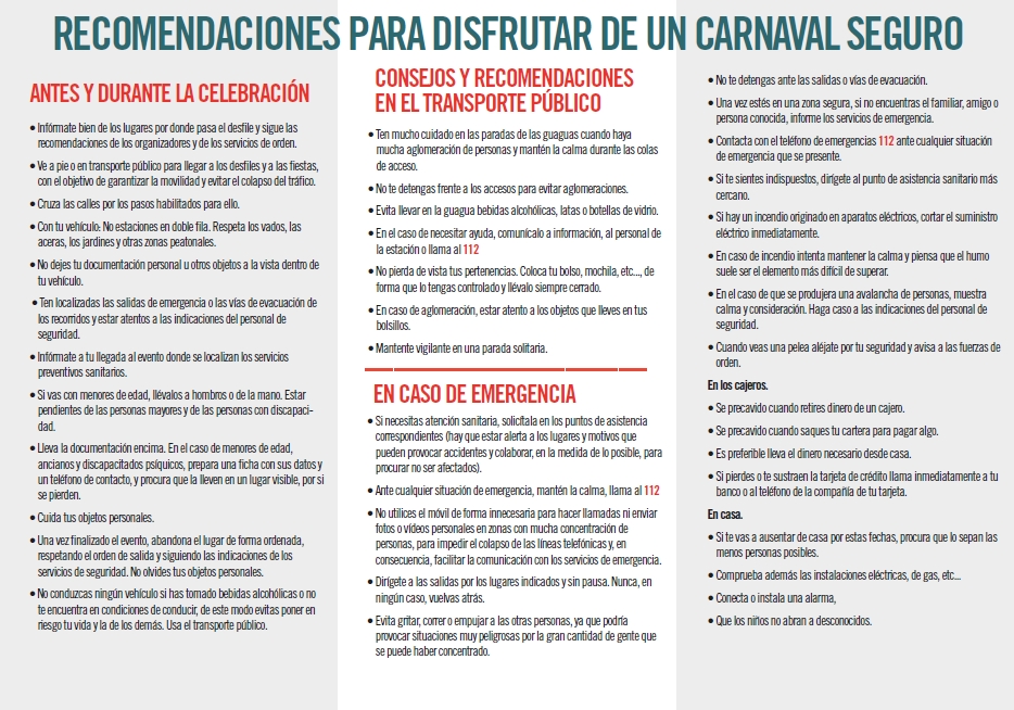 Recomendaciones y medidas preventivas para disfrutar de los Carnavales con seguridad del Consorcio de Seguridad y Emergencias.