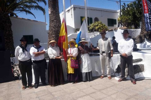 La jornada festiva organizada desde el área de festejos del Ayuntamiento, dio comienzo en la localidad de San Bartolomé, en la Plaza León y Castillo dando la salida a los actos el izado de banderas, contando con la presencia de la Corporación Municipal, continuando con la actuación de la Parranda Raíces.