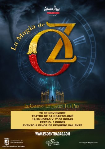 En esta edición el Teatro de San Bartolomé acogerá el espectáculo “La Magia de Oz”, producido por Camino Viejo Producciones, en dos sesiones a las 12.30 y 17.00 horas. El coste de la entrada es de 3€, y tendrá fin solidario, lo recaudado irá íntegramente a beneficio de la Fundación Canaria Pequeño Valiente. Las entradas estarán disponibles en la plataforma www.ecoentradas.com